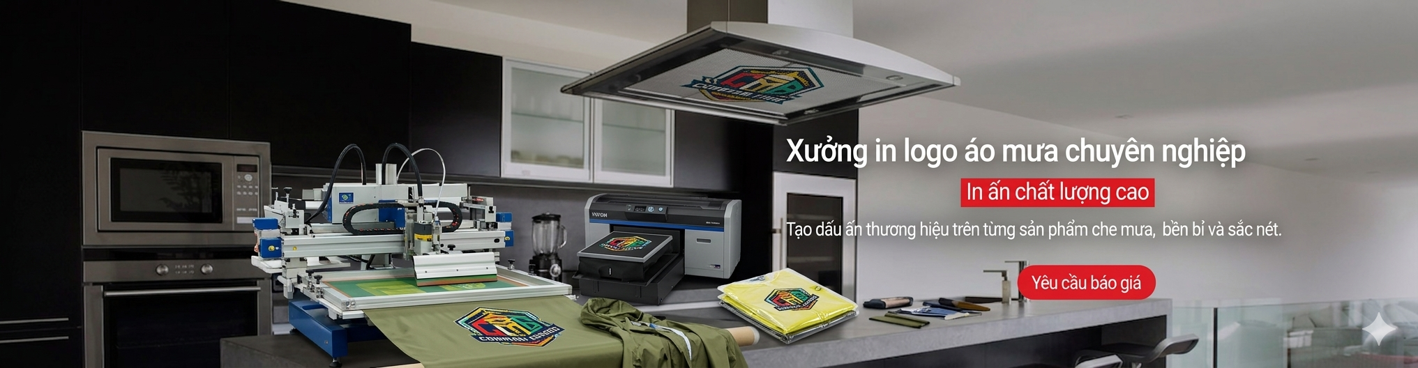 Chốt phương án in ấn áo mưa, ô dù, balo, vị trí in logo, số lượng màu